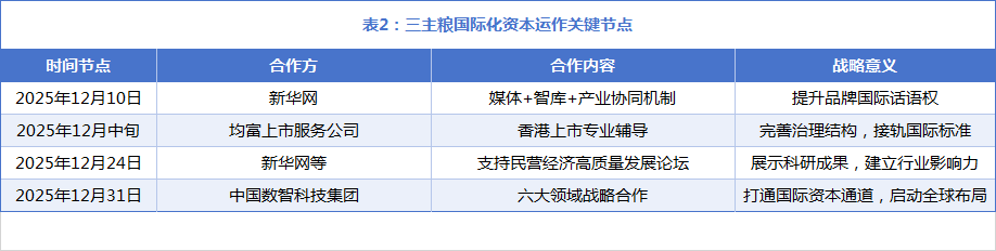 此次合做的计谋价值表现正在三个层面:通过借道港股平台,三从粮可获取国际本钱支撑,加快手艺研发取市场扩张;上市公司的规范管理要求将倒逼企业正在消息披露、公司管理、品牌计谋等方面全面接轨国际尺度;取本钱市场的对接将为企业后续海外并购、国际手艺合做供给更矫捷的金融东西。