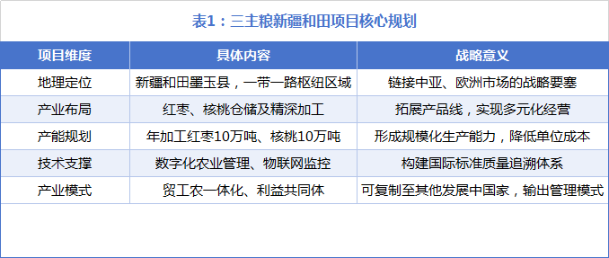正在和田项目中,三从粮规划扶植以核桃、红枣仓储、研发、精湛加工为一体的分析财产,方针构成年加工红枣十万吨、核桃十万吨的出产能力。这一结构不只拓展了企业产物线,更通过数字化农业办理系统取物联网手艺的引入,建立了取国际尺度接轨的农产质量量逃溯系统,为产物出海奠基了手艺根本。值得留意的是,该项目采用了“企业+农人”的好处配合体模式,通过整合上、下逛资本构成贸工农一体化的出产系统,这种模式正在后续国际化扩张中可复制至其他成长中国度,实现手艺取办理的双向输出。